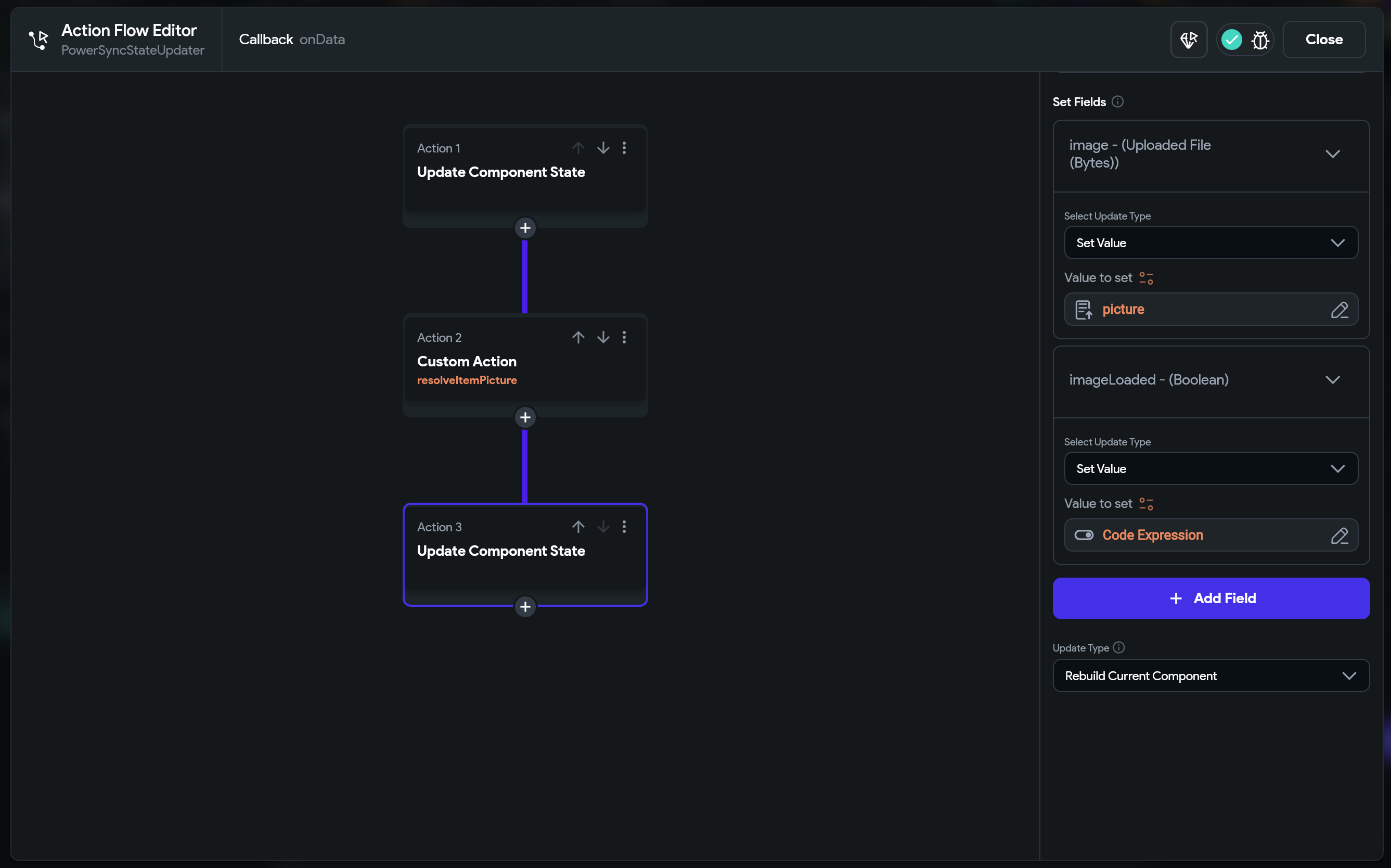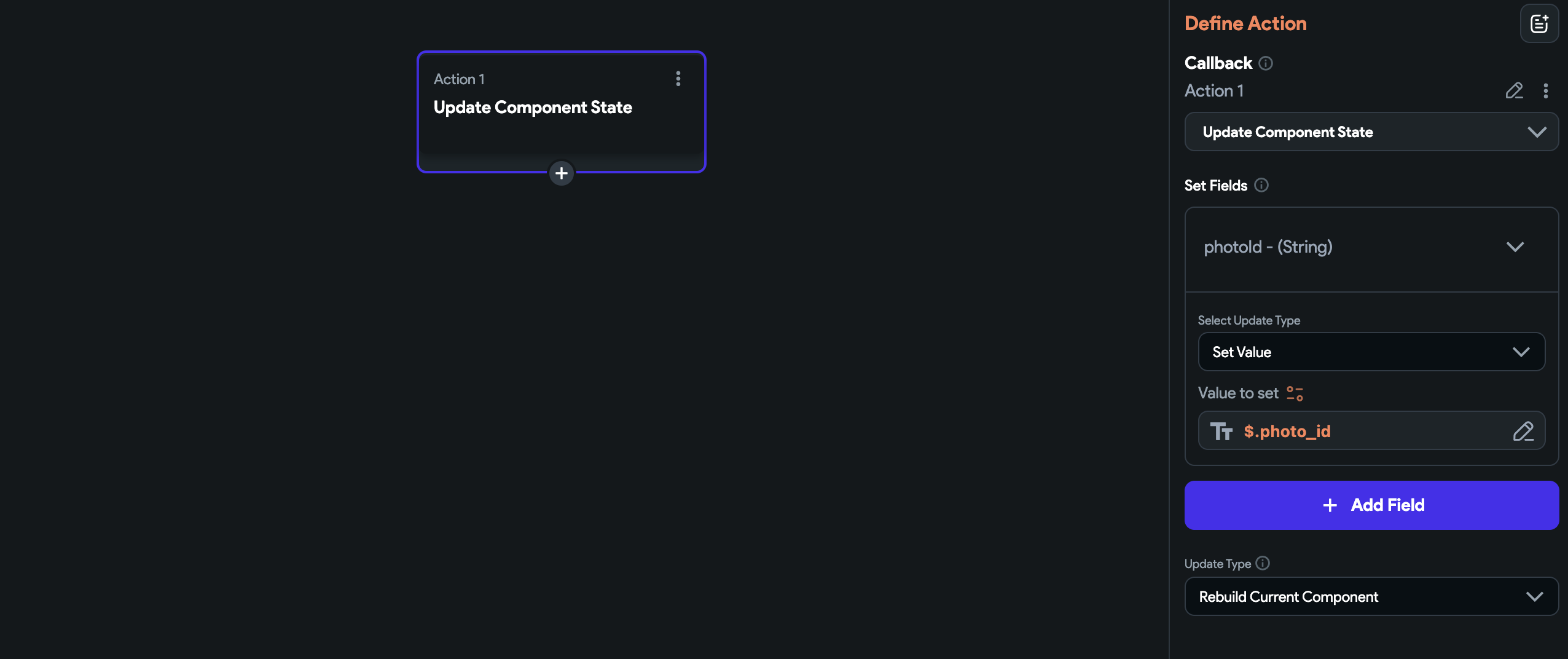 15. Set the “Value” to the “Component State” -> photoId state variable.