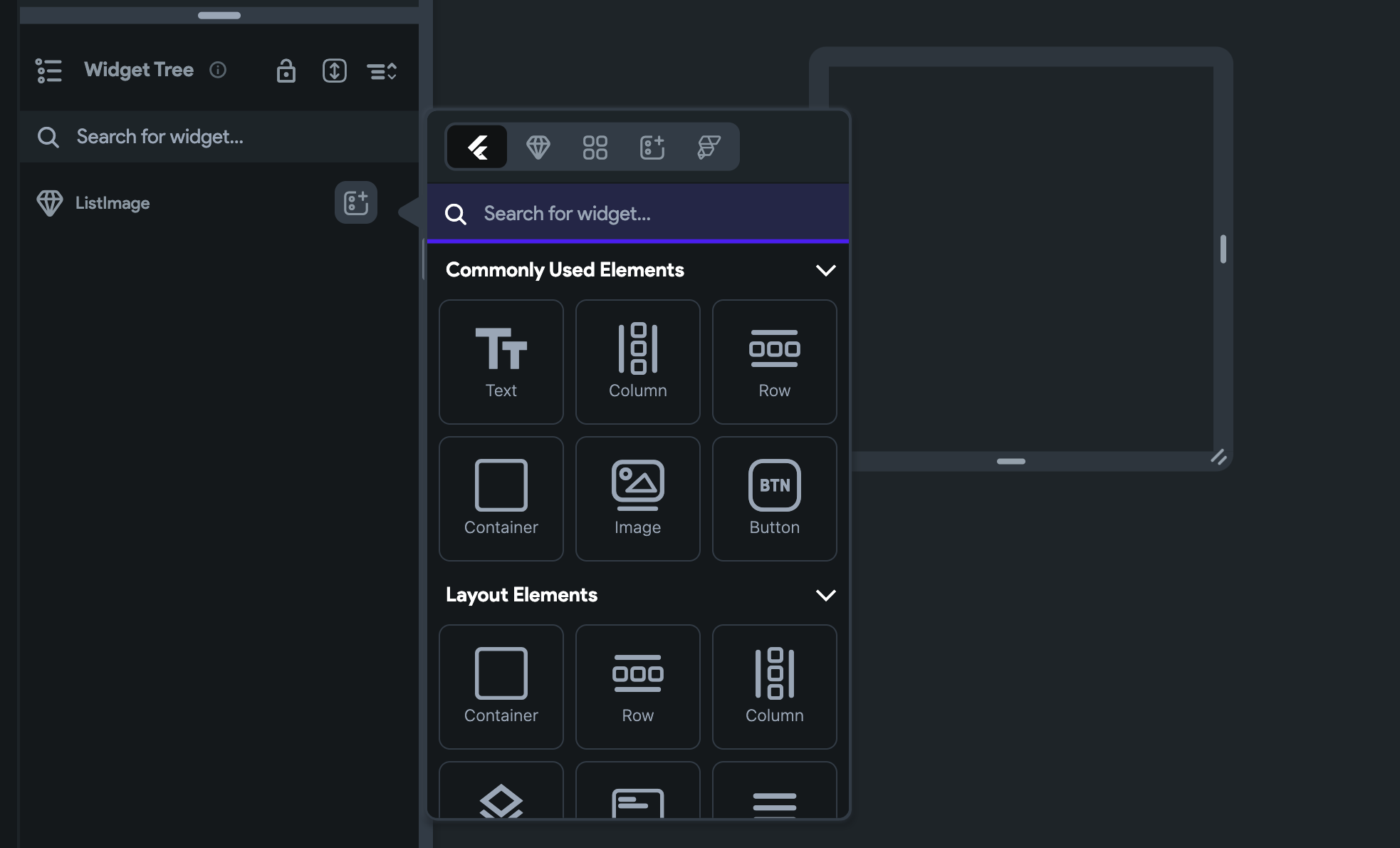 1. Under the “Widget Tree”, select the “Column” component within your ListImage component.