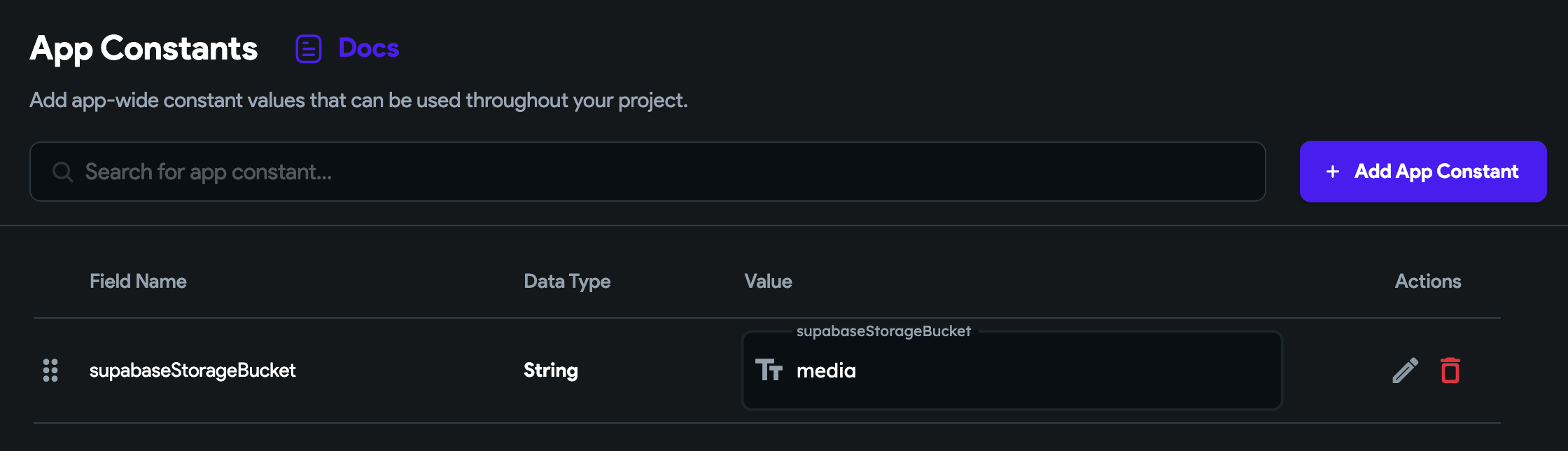 1. Finally, back in FlutterFlow, create an App Constant to store the bucket name: