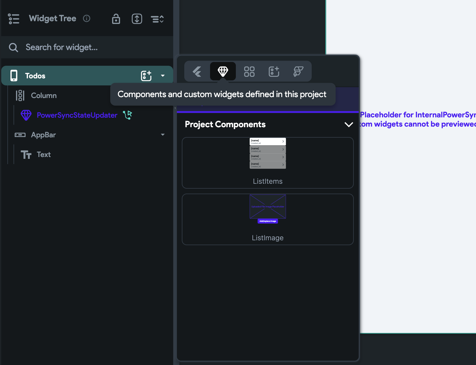 2. Under the “Widget Tree”, right-click on the PowerSyncStateUpdater library component.