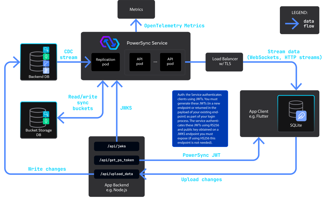 - 2+ PowerSync API containers, 1GB memory each, 1vCPU each.