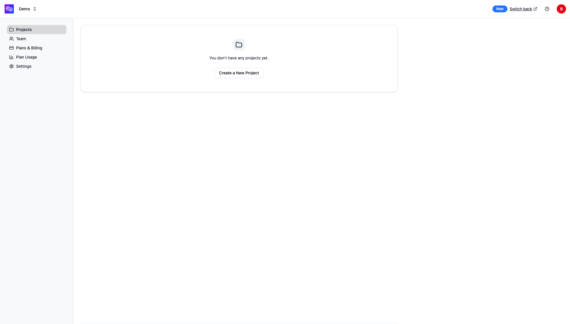 Empty projects view - create your first project